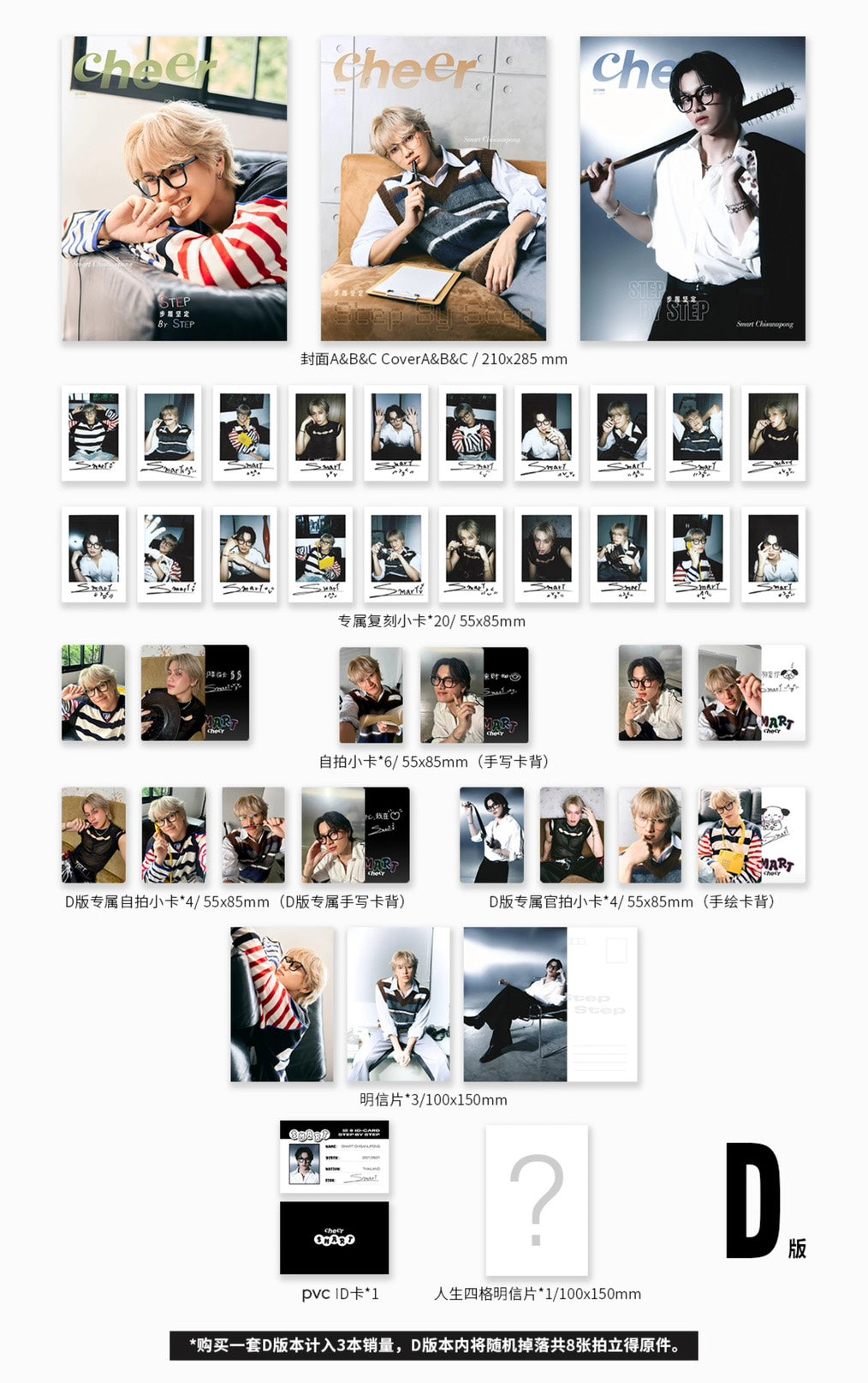 Celebrate Smart Chisanupong with this Cheer x Smart Magazine, available in multiple sets featuring collectible photocards, postcards, and special autograph options.