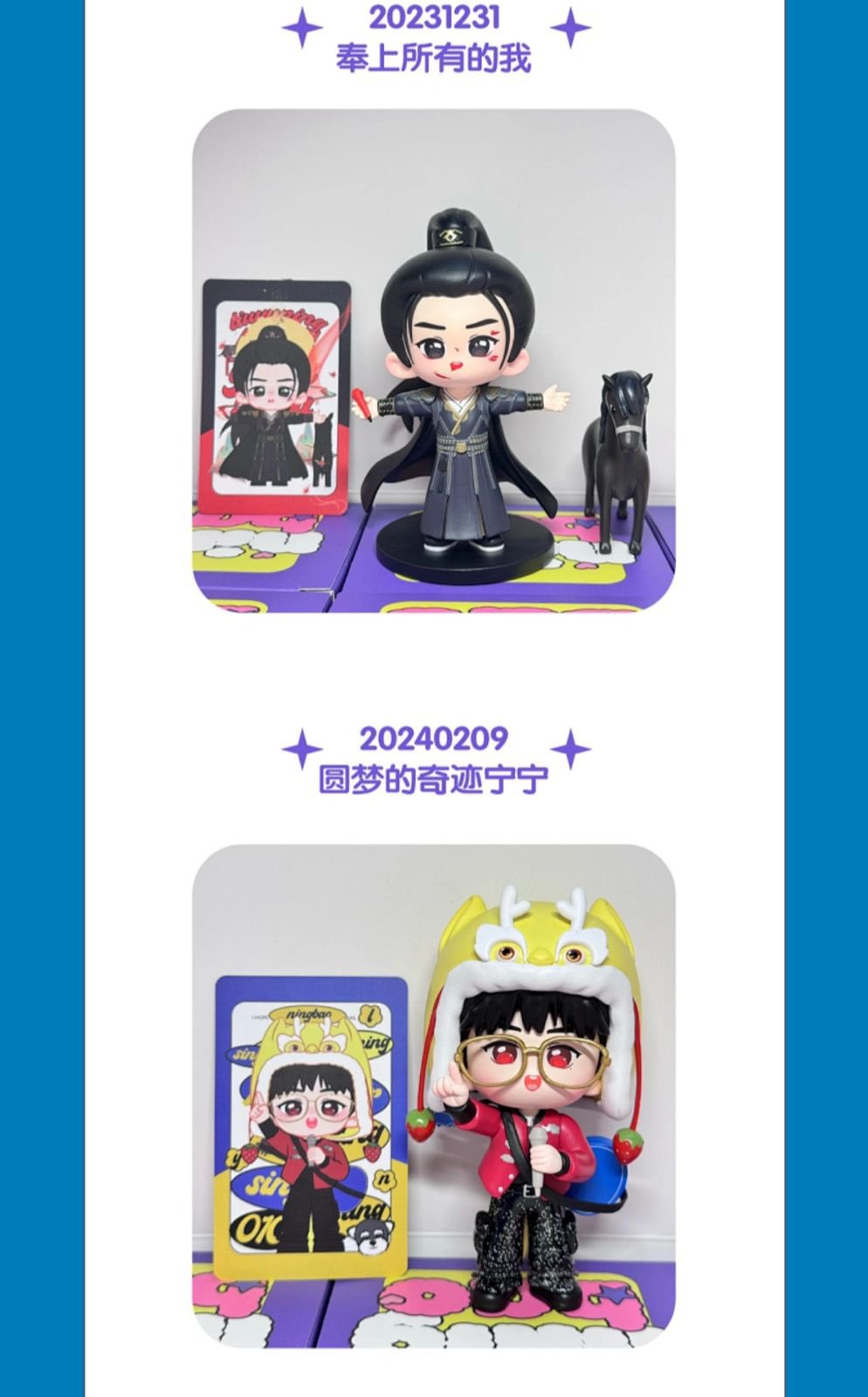 Celebrate the charm of Liu Yuning with the Ning Bao collectible figure series! Each figure captures a different adorable look of Liu Yuning, designed with premium details and perfect for collectors and fans alike.